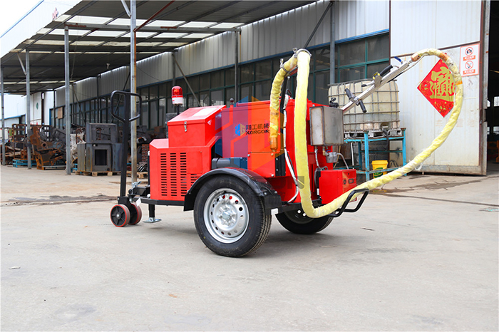 道路出現(xiàn)裂縫雖然是外界因素導(dǎo)致,但我們可以及時的處理,并防止進(jìn)一步的病害發(fā)生。治理的目的主要是防止雨水灌入縫內(nèi),將裂縫封住,通常叫做灌縫。翔工生產(chǎn)的XGF-100L瀝青灌縫機(jī)主要針對瀝青路面或水泥路面裂縫進(jìn)行灌縫。翔工瀝青灌縫機(jī)高溫專用瀝青泵,輸料壓力大,物料嵌入裂縫深,施工質(zhì)量有保證,物料流量無級調(diào)整,適合各種寬度及形狀的裂縫修補(bǔ)作業(yè)。