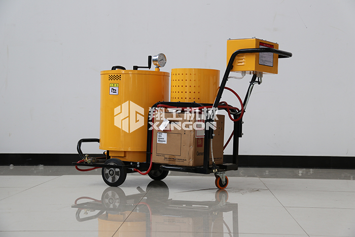 翔工60L手扶瀝青灌縫機采用液化氣加熱系統(tǒng),導熱油循環(huán),使瀝青或灌縫膠快速融化,通過瀝青泵的壓力由出料口出料而達到裂縫處理的效果。通過壓力注射式灌縫,使材料和縫壁緊密結合,轉向靈活的萬向輪追蹤裂縫,使灌縫效果美觀。由于灌縫材料使用瀝青或灌縫膠,在溫度較低時容易凝固,灌縫機配有發(fā)電機組提供整機動力,灌縫機在出料管部位采用恒溫控制系統(tǒng),避免材料燒焦老化,保證出料的順暢。