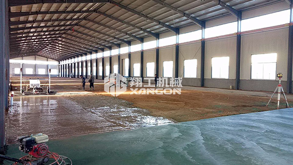 在手扶混凝土攤鋪機整平頭有用的施工范圍內,首先人工將混凝土初平至比地坪標高高1-2㎝(具體高度依混凝土坍落度而定),然后用手扶混凝土攤鋪機一次性完成振搗、壓實、整平工作。