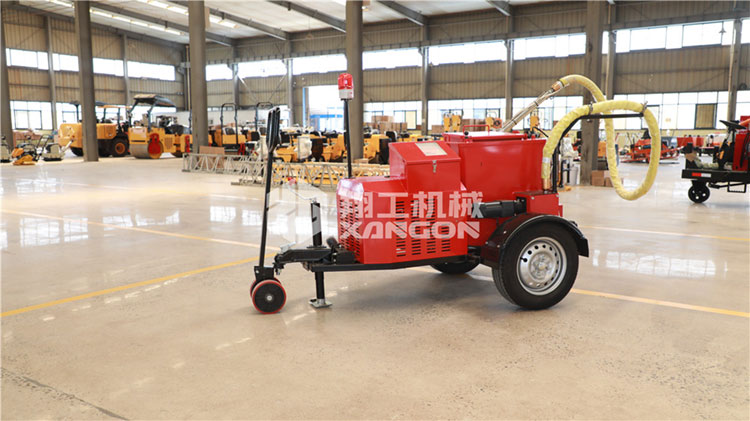 3.在一個(gè)就是使用瀝青灌縫機(jī)灌縫了,將瀝青灌縫膠放入瀝青泵中,進(jìn)行加熱,瀝青膠經(jīng)過(guò)加熱,灌縫機(jī)在出料管部位采用恒溫控制系統(tǒng),避免材料燒焦老化,保證出料的順暢,實(shí)現(xiàn)路面裂縫的修補(bǔ)。