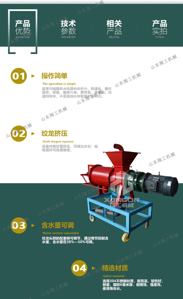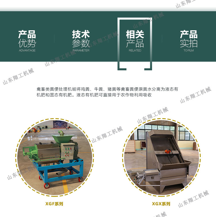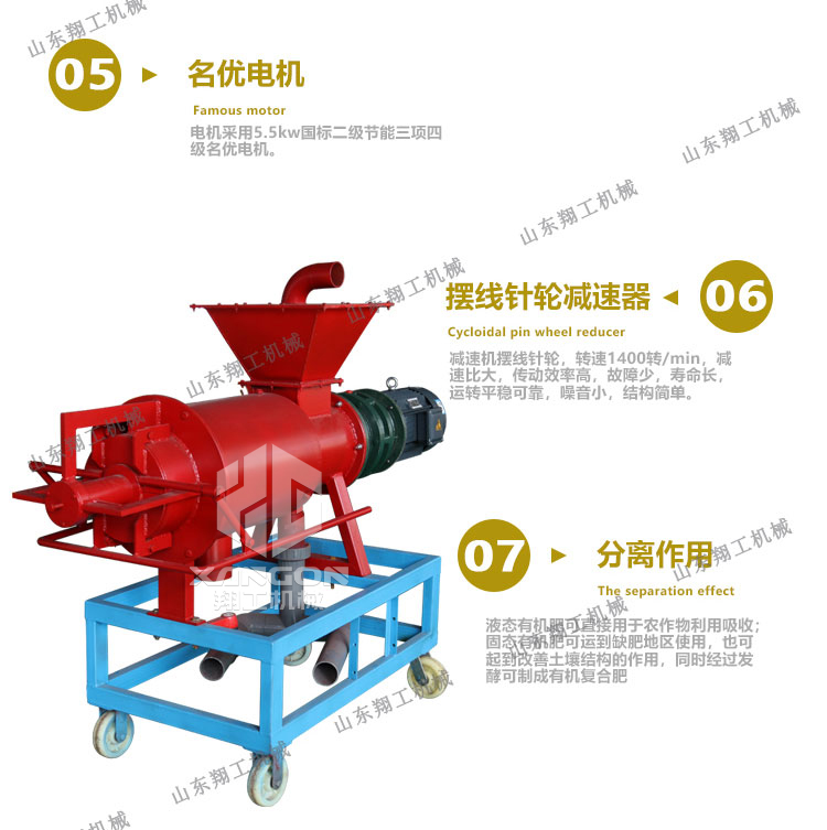 該系列雞糞脫水機(jī)具有體積小、轉(zhuǎn)速低、操作簡(jiǎn)單、安裝、維修方便、費(fèi)用省、效率高、投資回收快,不需添加任何絮凝劑等特點(diǎn);該機(jī)采用的螺旋軸、篩網(wǎng)為不銹鋼制作;禽畜類糞便處理機(jī)能將雞糞、牛糞、豬糞等禽畜糞便原糞水分離為液態(tài)有機(jī)肥和固態(tài)有機(jī)肥;液態(tài)有機(jī)肥可直接用于農(nóng)作物利用吸收;固態(tài)有機(jī)肥可運(yùn)到缺肥地區(qū)使用,也可起到改觀土壤結(jié)構(gòu)的作用,同時(shí)經(jīng)過處理可制成有機(jī)復(fù)合肥。
