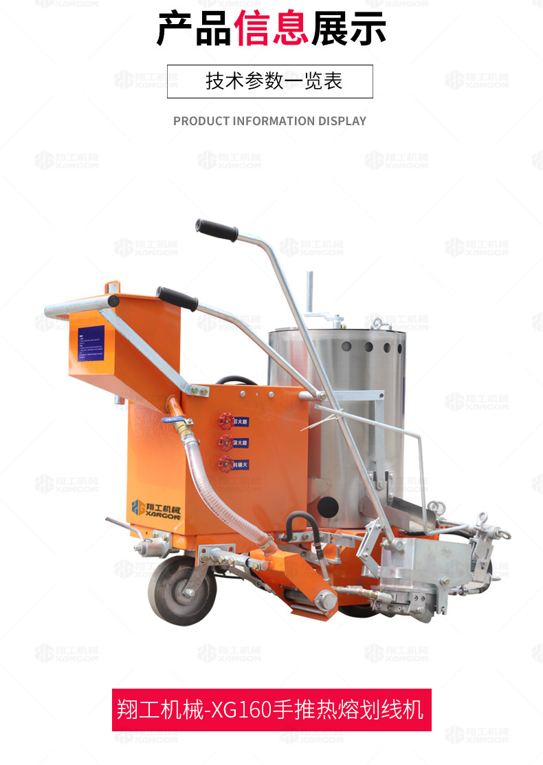 160手推熱熔劃線機(jī)采用普通鑄鐵劃線斗,同步離合玻璃微珠自動撒播器,具有結(jié)構(gòu)簡單、輕便、價優(yōu)、性能優(yōu)良等特點(diǎn)。
