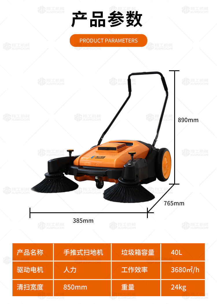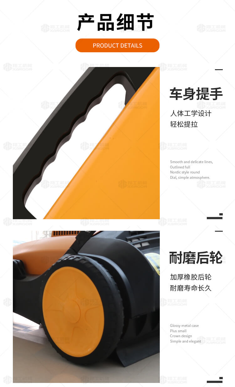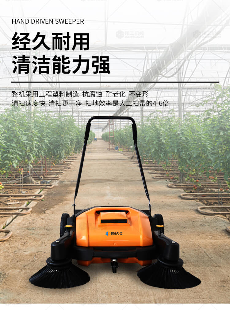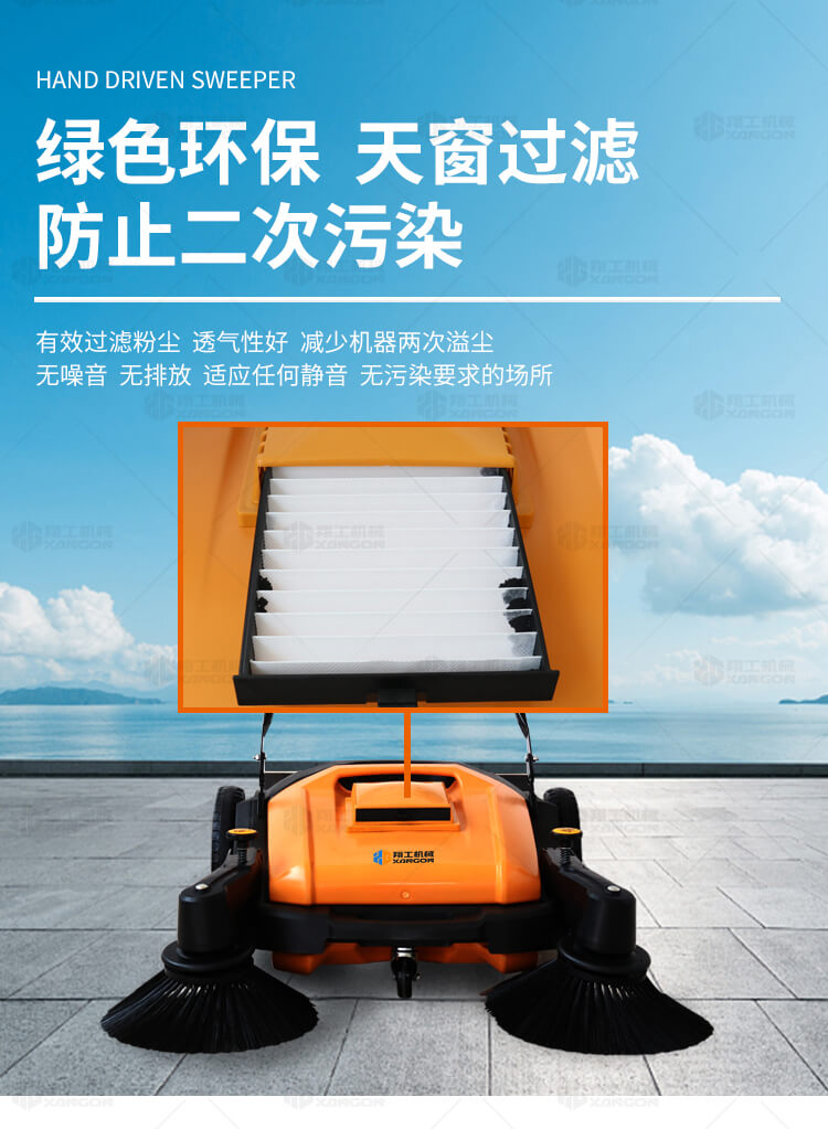 手推式掃地機(jī)能清潔房屋周邊范圍:包括小路,公路,車道和院子,能比用普通的掃把和簸箕節(jié)省5倍的時間,清掃時垃圾被迅速的收集到塵箱,簡單、快速、干凈。