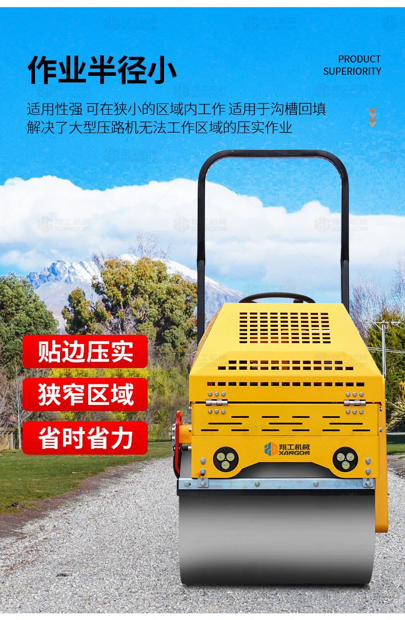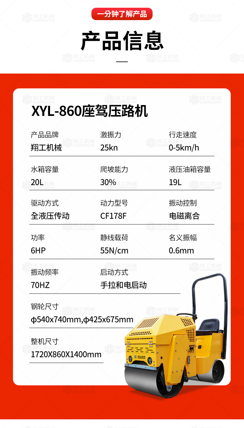 XYL-860座駕壓路機(jī)適用于各種溝槽沙土回填壓實、高層建筑地下室土方壓實、小區(qū)道路基礎(chǔ)壓實、各種草坪壓實、修補(bǔ)及各種小型工程的使用,解決了大型壓路機(jī)無法工作區(qū)域的壓實作業(yè)。