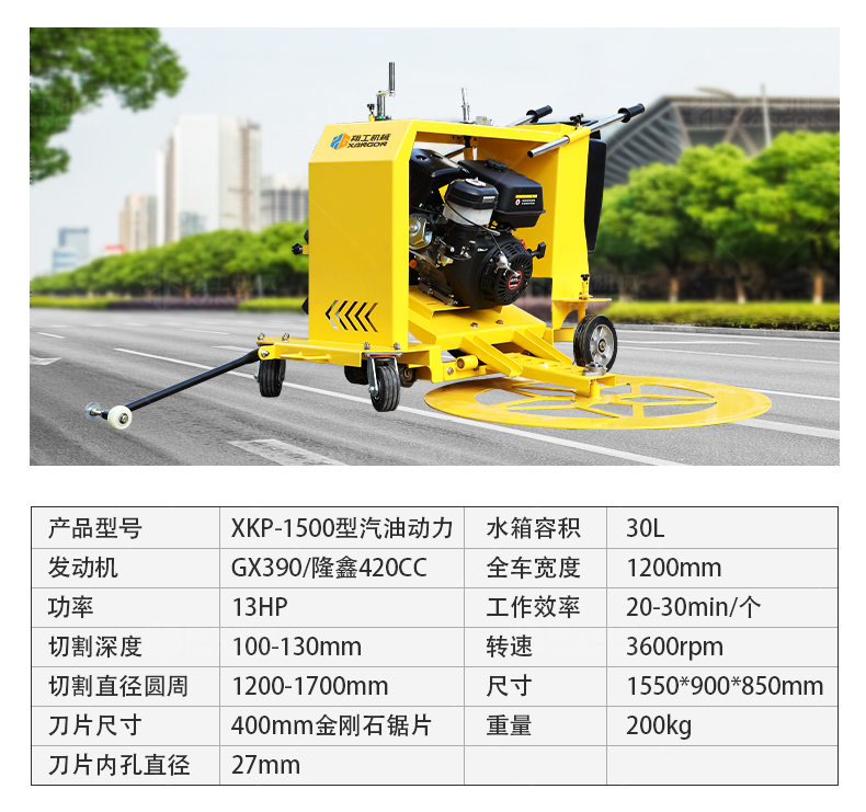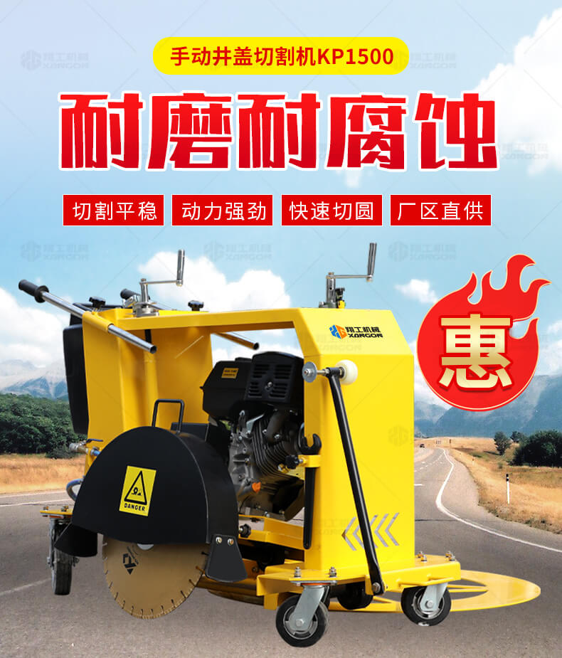 XG-1500型井蓋切割機(jī),專門用于對城市道路中機(jī)動(dòng)車道等井蓋周圍的水泥混凝土或?yàn)r青路面進(jìn)行圓形切割。為清楚井蓋周圍的破損路面提供分割區(qū)域,恢復(fù)后的地面美觀,延長了路面的使用壽命。