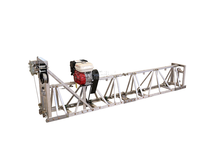 1,雙速手搖絞車(合金鋼齒輪的手動絞輪)輕松控制整機(jī)的行走,操作省力而且能均勻的控制振動梁工作速度。一般情況下,振動梁每分鐘可前行3-4米,即完成20-40㎡/分。
