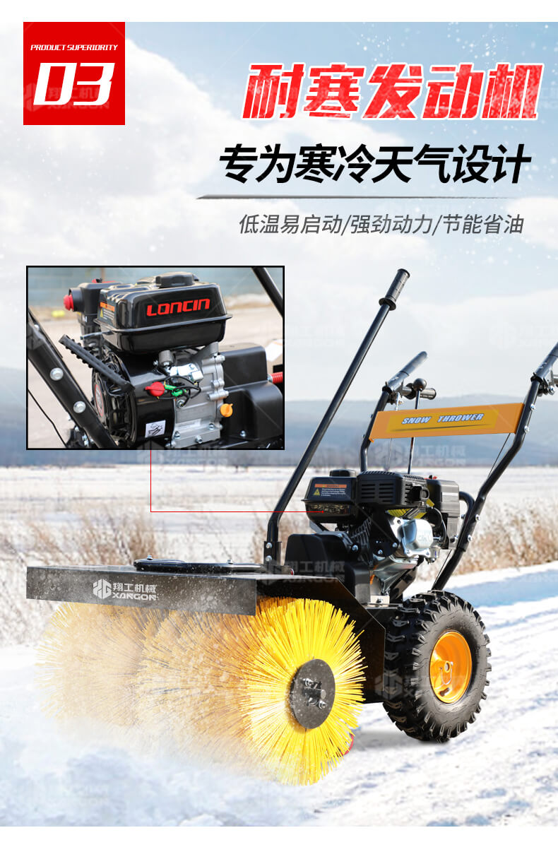 1、節(jié)省勞動(dòng)力,一臺(tái)機(jī)器能完成至少20個(gè)人的工作量 2、節(jié)省管理成本,降低環(huán)衛(wèi)工人的交通事故率 3、清掃人行道等路面非常干凈,不留殘雪