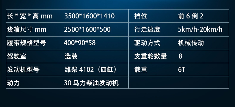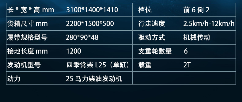 履帶運(yùn)輸車是專門提供復(fù)雜路況運(yùn)輸工作的機(jī)器,適用于普通運(yùn)輸車輛無法或者不適合通行的地方。履帶運(yùn)輸車以履帶代替了輪式行走,降低了對(duì)地面的損傷,同時(shí)履帶行走裝置降低了機(jī)器與地面的單位面積壓力,適用于山林、田地、沼澤、沙地、草地、雪地以及土質(zhì)松軟或氣候條件不太發(fā)的接近角和離地角。
