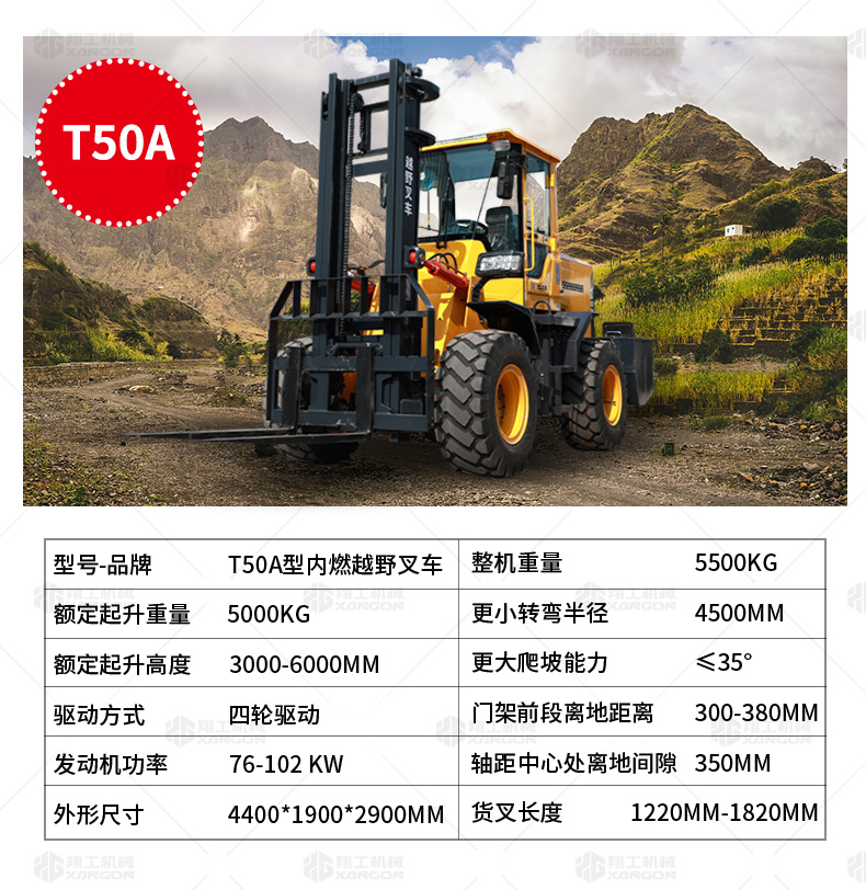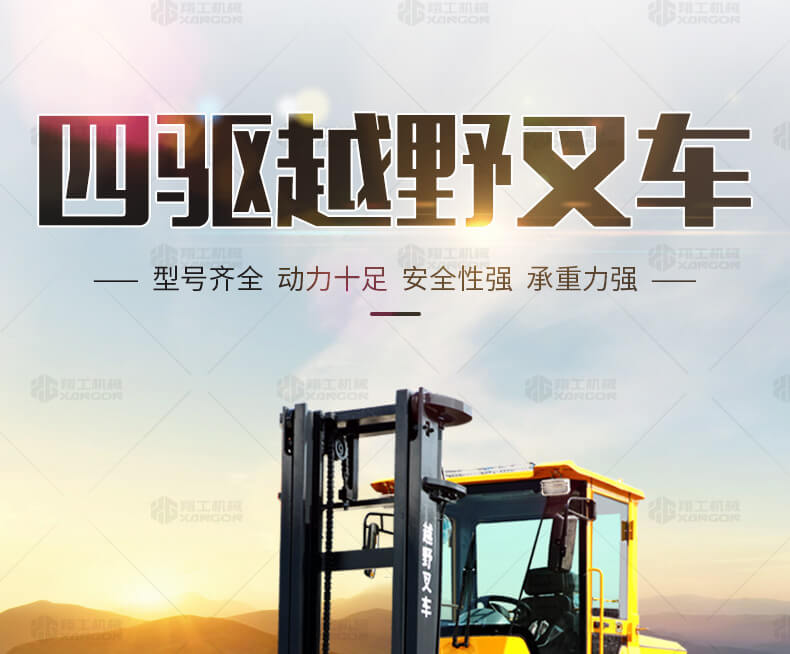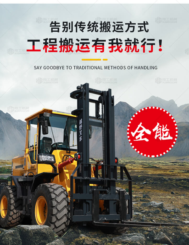 5.越野叉車發(fā)動機功率大,采用全輪驅(qū)動和越野輪胎。