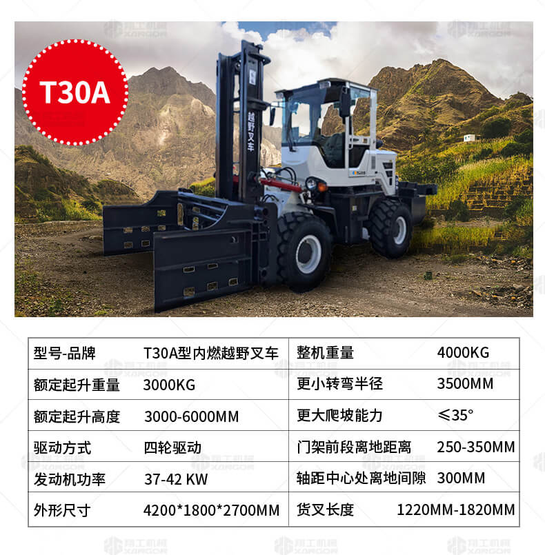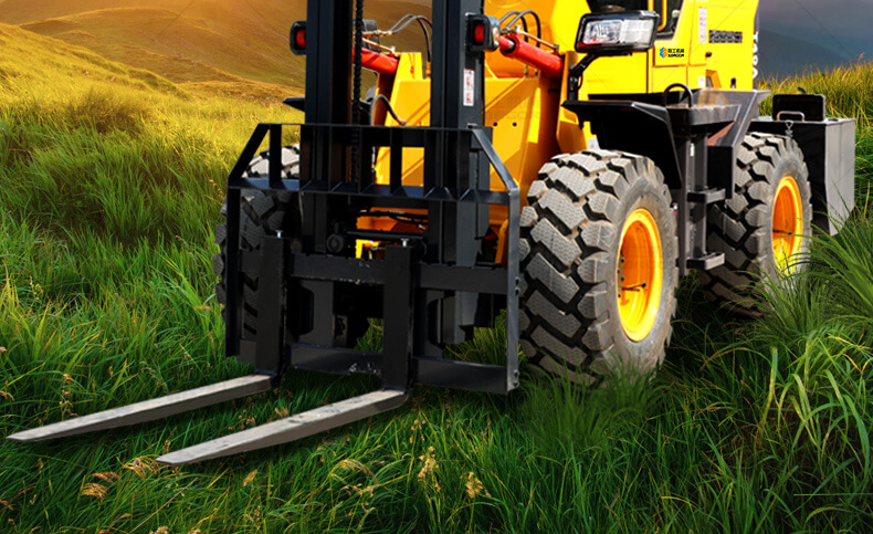 越野叉車可以在坡地和不平地面上進行貨物裝、卸、堆垛及搬運作業(yè),具有良好的機動性、越野性可靠性。其功能多樣,可搭配側(cè)移器、調(diào)距叉、旋轉(zhuǎn)器、軟包夾、推出器、側(cè)翻叉、側(cè)翻斗、起重臂等工具完成不同的工作。