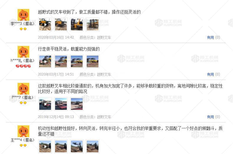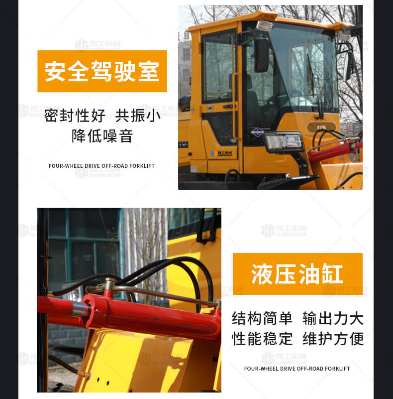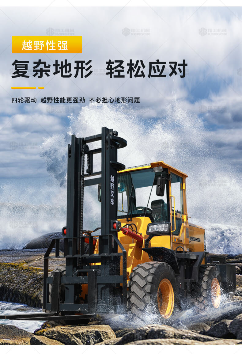 3.普通叉車只能在平整的路面上作業(yè),而越野叉車既可以在普通路面上作業(yè),還可以在山路泥路崎嶇道路作業(yè),輪胎抓地力強,不打滑。