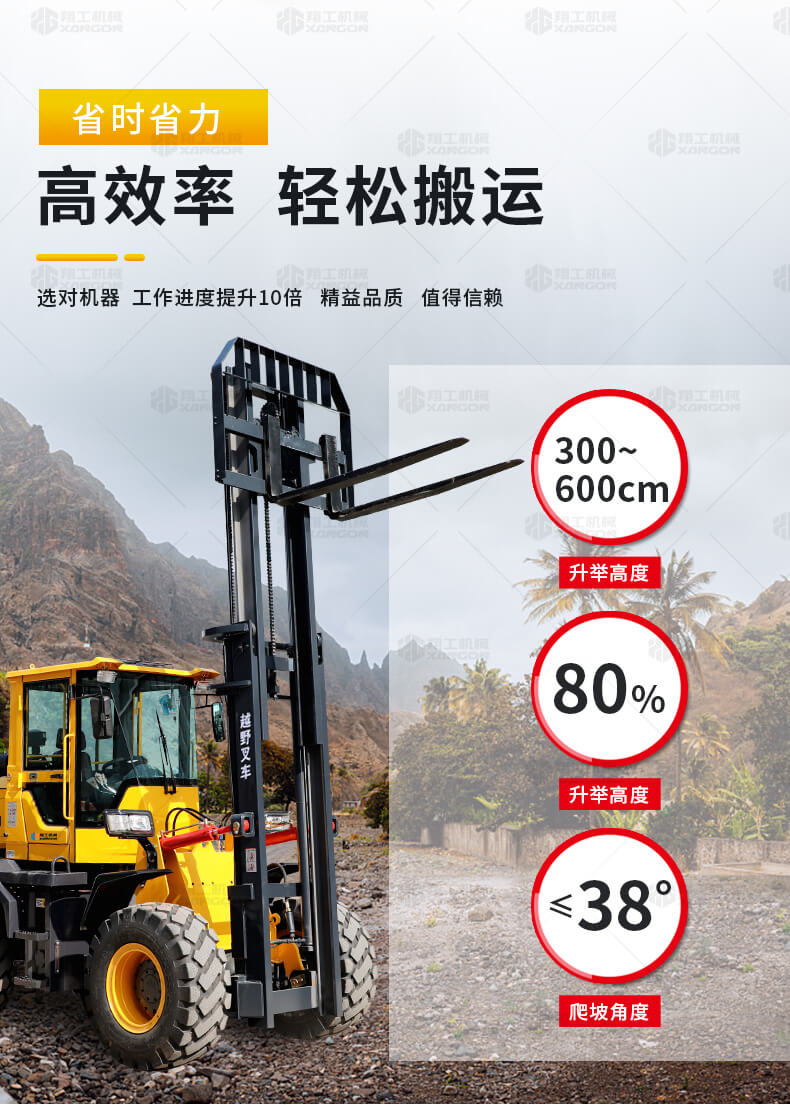 4.越野叉車的速度高于普通叉車,目前已發(fā)展到40km/h,其機動性顯而易見。