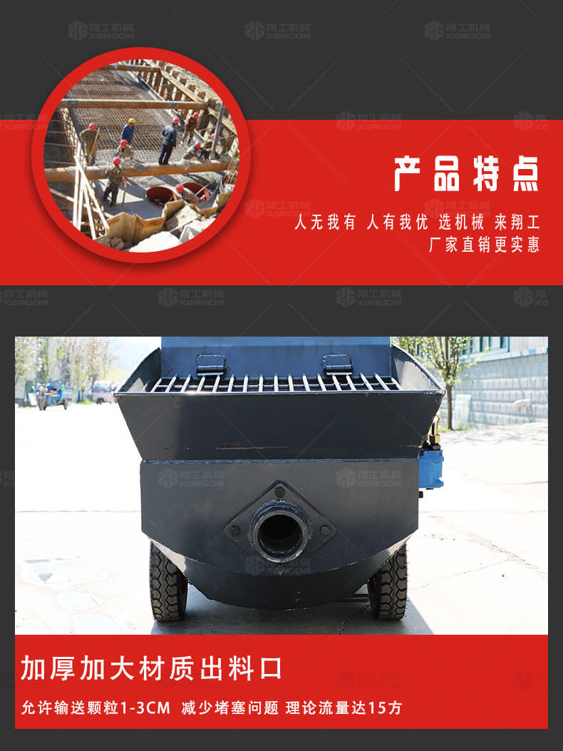 100型普通款澆筑泵優(yōu)勢多多,性能可靠,設(shè)備各個(gè)結(jié)構(gòu)生產(chǎn)制作科學(xué),電機(jī)功率大、性能穩(wěn)定、施工效率高等優(yōu)勢,使用電動澆筑泵大大提高了施工效率,降低勞動強(qiáng)度,節(jié)約人工,被廣泛應(yīng)用。是工程施工的好幫手。