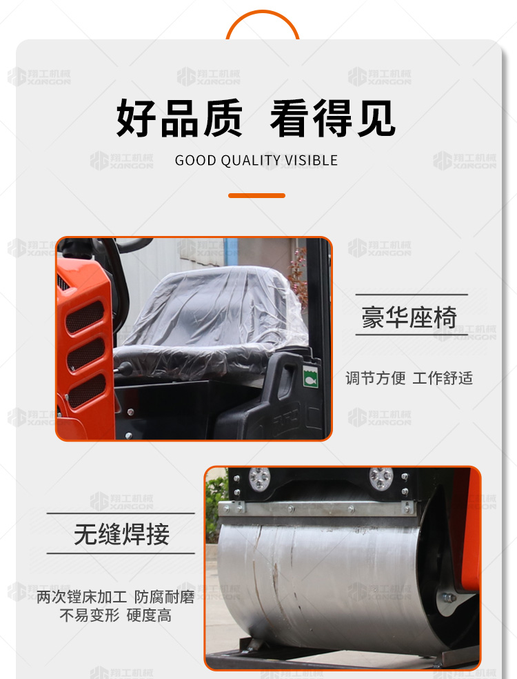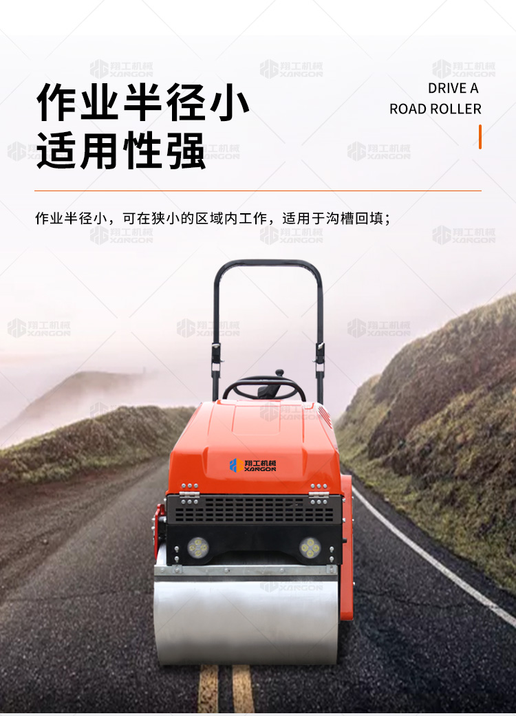 1t小型座駕壓路機(jī)體積小,行走靈活,可以用于瀝青壓實(shí)、回填作業(yè)、溝槽壓實(shí)作業(yè)、體育場(chǎng)地等壓實(shí)作業(yè),應(yīng)用范圍廣,性價(jià)比高。經(jīng)典橘紅色款非常受歡迎。