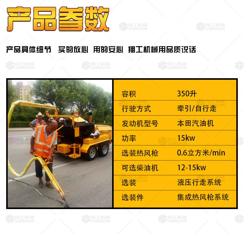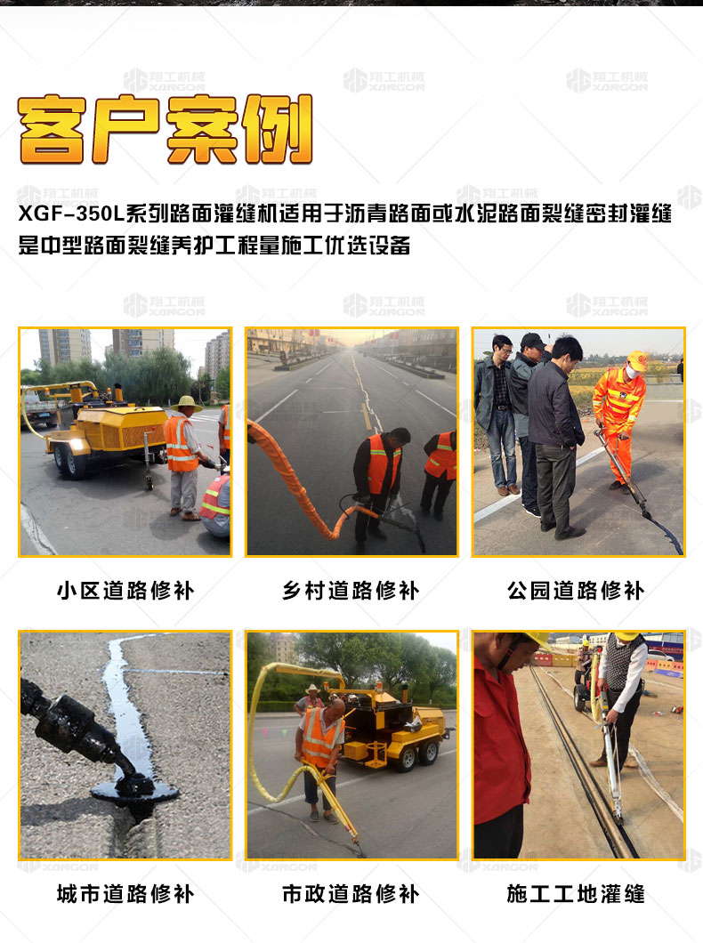 XGF-350系列路面灌縫機(jī)適用于瀝青路面或水泥路面裂縫密封灌縫,是中型路面裂縫養(yǎng)護(hù)工程量施工優(yōu)選設(shè)備。