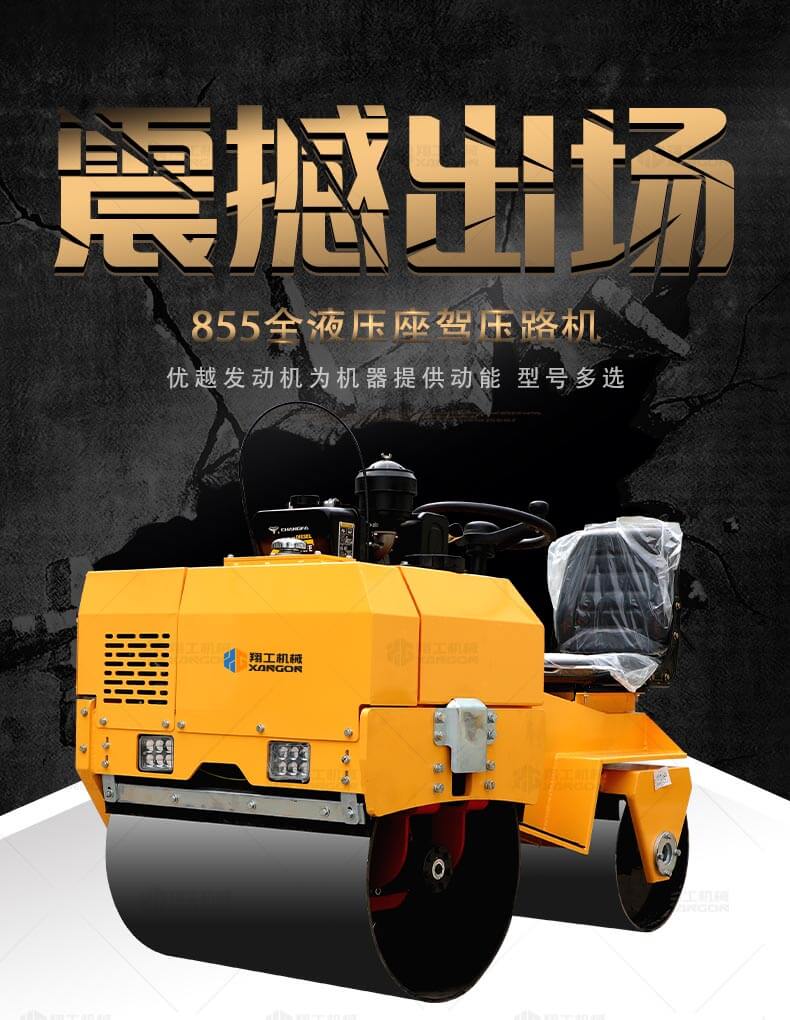 855座駕壓路機主要用于溝渠基礎,道路,體育場地的壓實整平,也可用于壓實瀝青表面的作業(yè)。