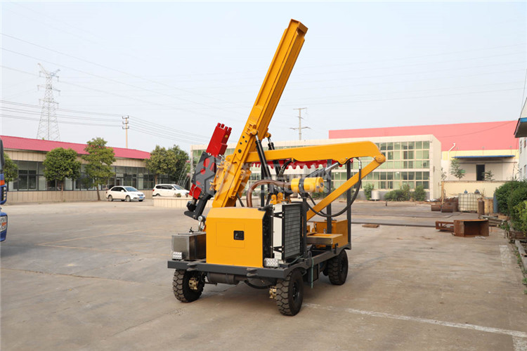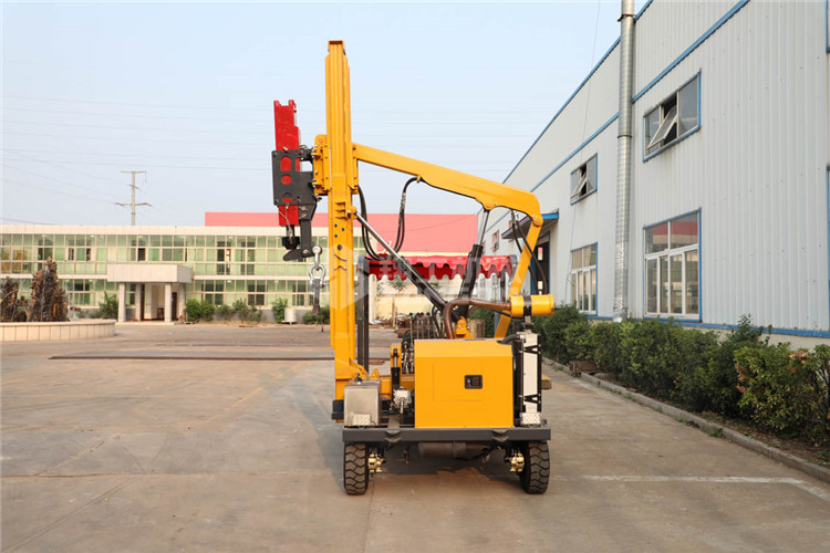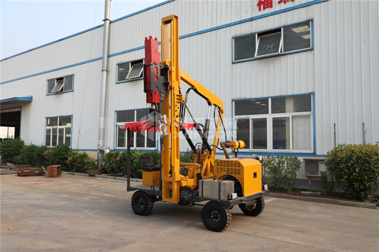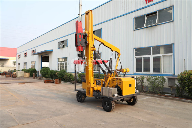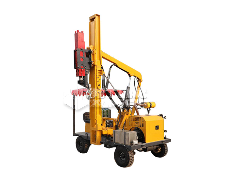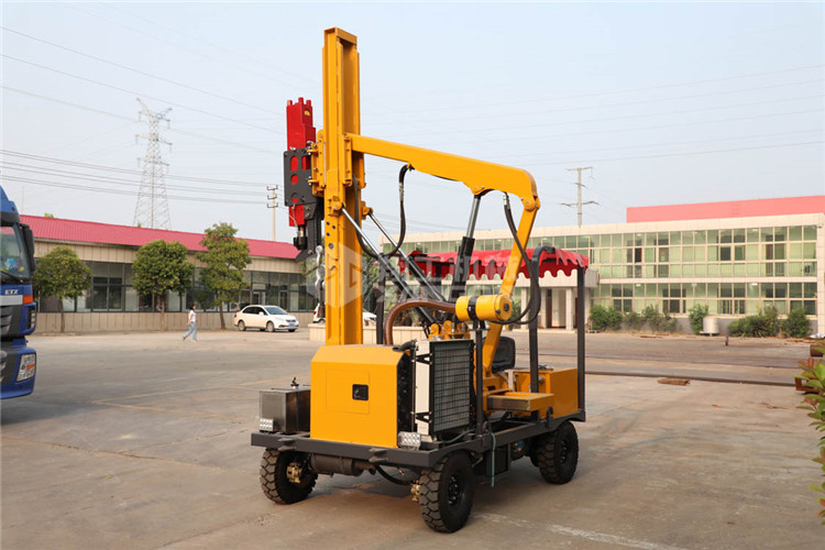 小四輪打樁機適用于公路護(hù)欄鉆孔、打樁、拔樁,其他各種場地打樁(農(nóng)場、園林、果園),公路野外工程施工。