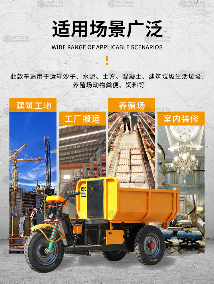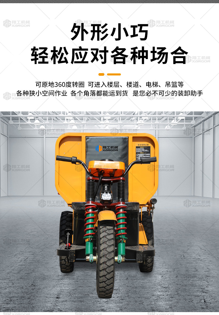 此款車(chē)適用于建筑工地、室內(nèi)裝修、養(yǎng)殖場(chǎng)、工廠等場(chǎng)所,運(yùn)輸沙子、水泥、土方、混凝土、建筑垃圾生活垃圾、養(yǎng)殖場(chǎng)動(dòng)物糞便、飼料等,體積小操作簡(jiǎn)單靈活,可原地360度轉(zhuǎn)圈,可進(jìn)入樓層、樓道、電梯、吊籃等各種狹小空間作業(yè),是您必不可少的裝卸助手。