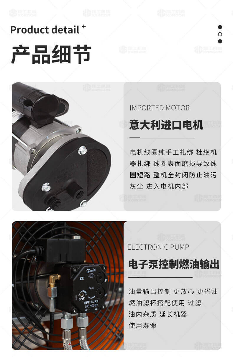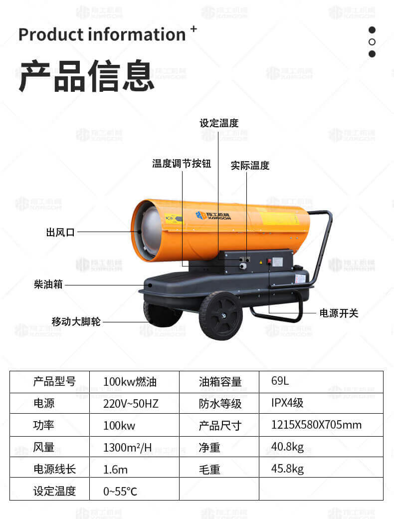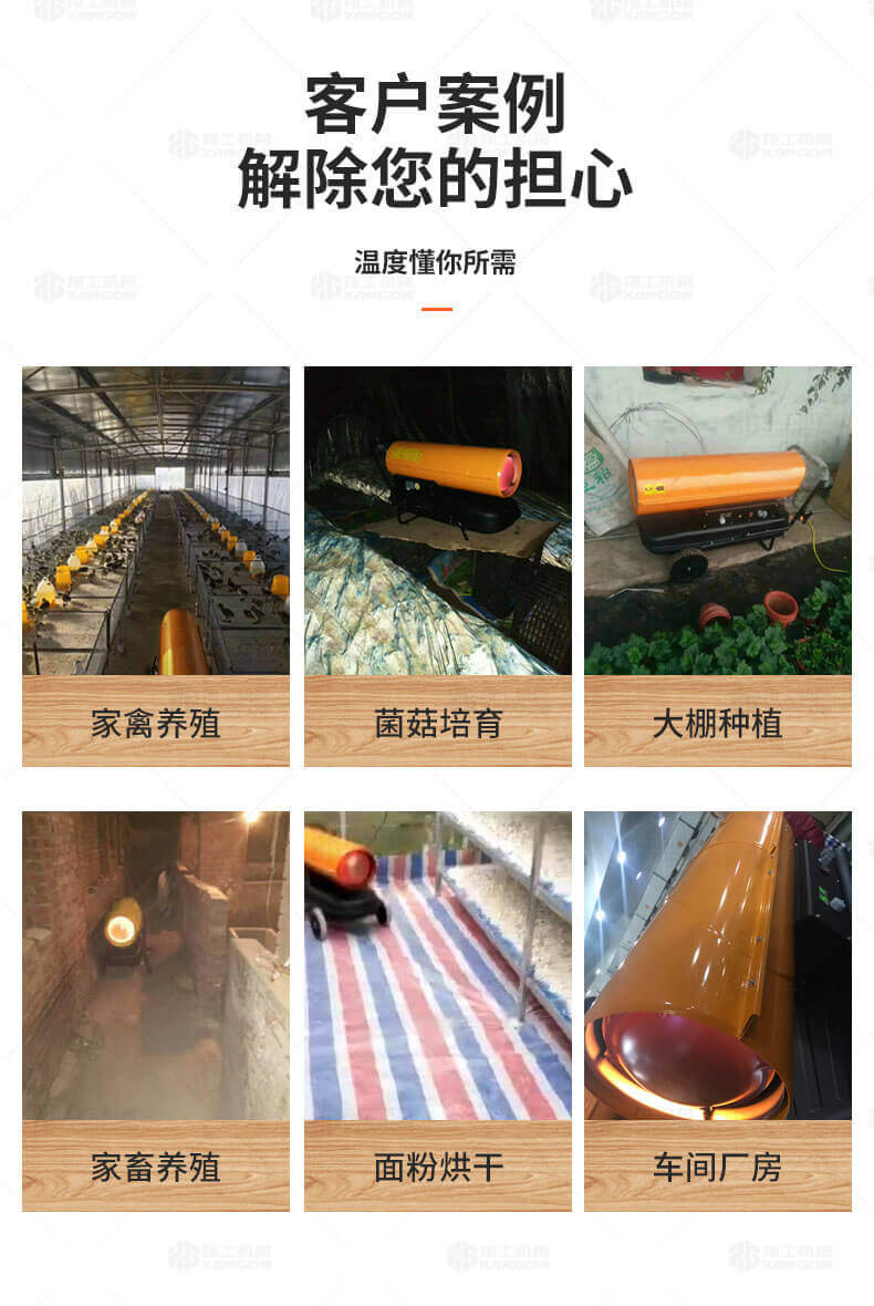 廠房、車間、養(yǎng)殖、建筑工地、辦公室、宿舍等局部取暖設施。 ☆任何需要加溫的場所。