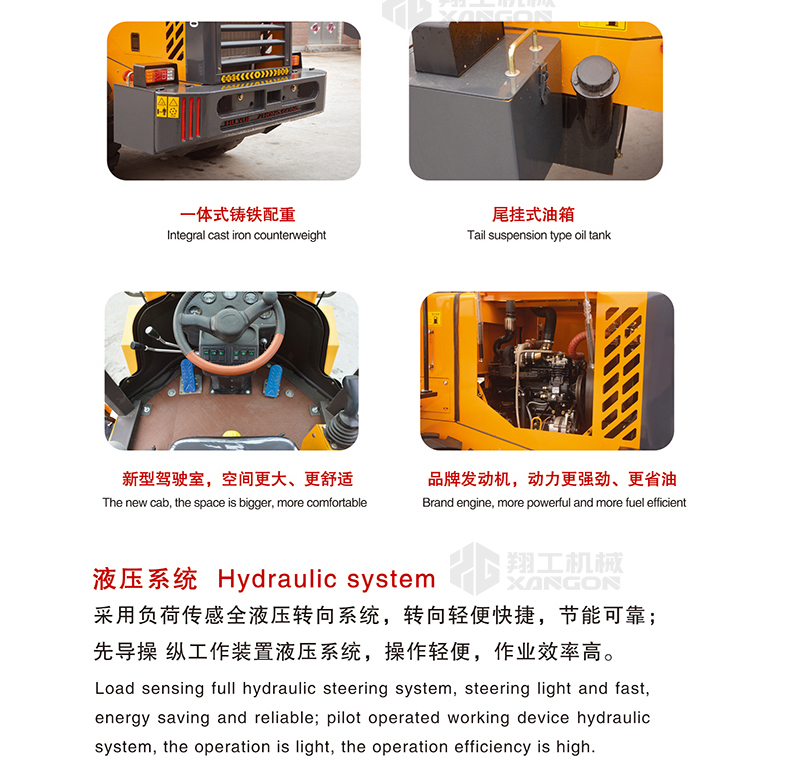 主要用于鏟裝土壤、砂石、石灰、煤炭等散狀物料,也可對礦石、硬土等作輕度鏟挖作業(yè)。換裝不同的輔助工作裝置還可進行推土、起重和其他物料如木材的裝卸作業(yè)。在道路、特別是在高等級公路施工中,裝載機用于路基工程的填挖、瀝青混合料和水泥混凝土料場的集料與裝料等作業(yè)。