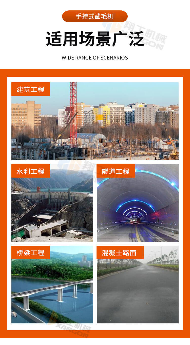手持式懸掛鑿毛機(jī)機(jī)身有吊環(huán),鑿墻面的話吊起來使用,對平面、立面、弧形等多角度進(jìn)行鑿毛作業(yè),打擊力大、鑿深自如,應(yīng)用領(lǐng)域非常廣泛,又省力還方便。 主要適用于水庫、大壩滲漏,險(xiǎn)橋危橋、電廠、隧洞、高速公路、鐵路橋面以及箱梁混凝土等眾多領(lǐng)域 。主要是對混凝土表面進(jìn)行剔鑿,建筑物墻體、地面以及市政工程混凝土面層剔除、修補(bǔ)、翻新、加固等。