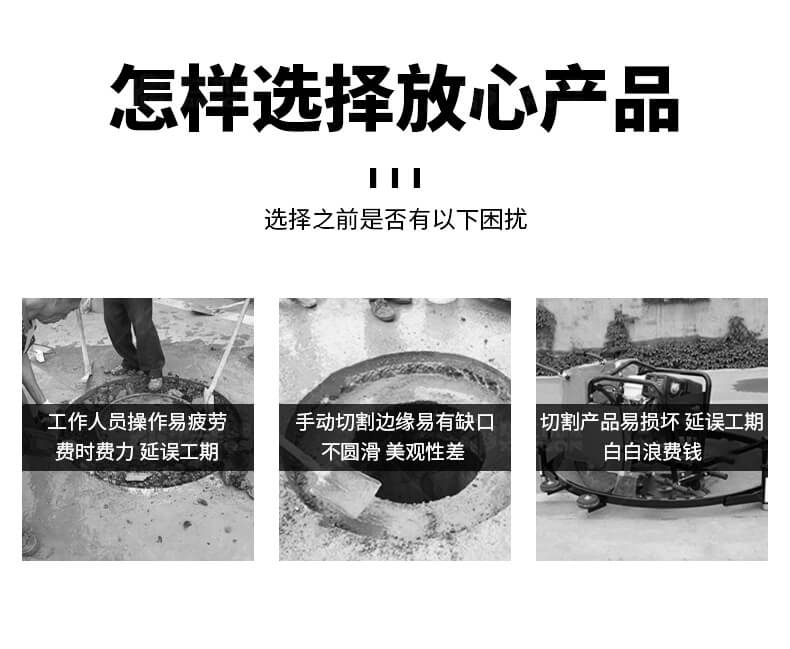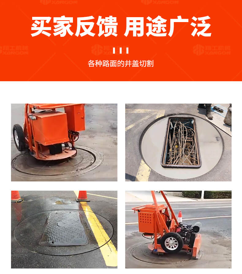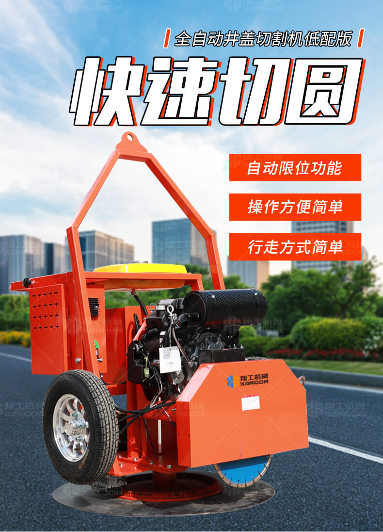 全自動井蓋切割機,專門用于對城市道路中機動車道等井蓋周圍的水泥、混凝土、瀝青、特殊路面進行圓形切割。為清除井蓋周圍的破損路面提供分割區(qū)域,修復(fù)后的地面美觀,延長了路面的使用壽命。