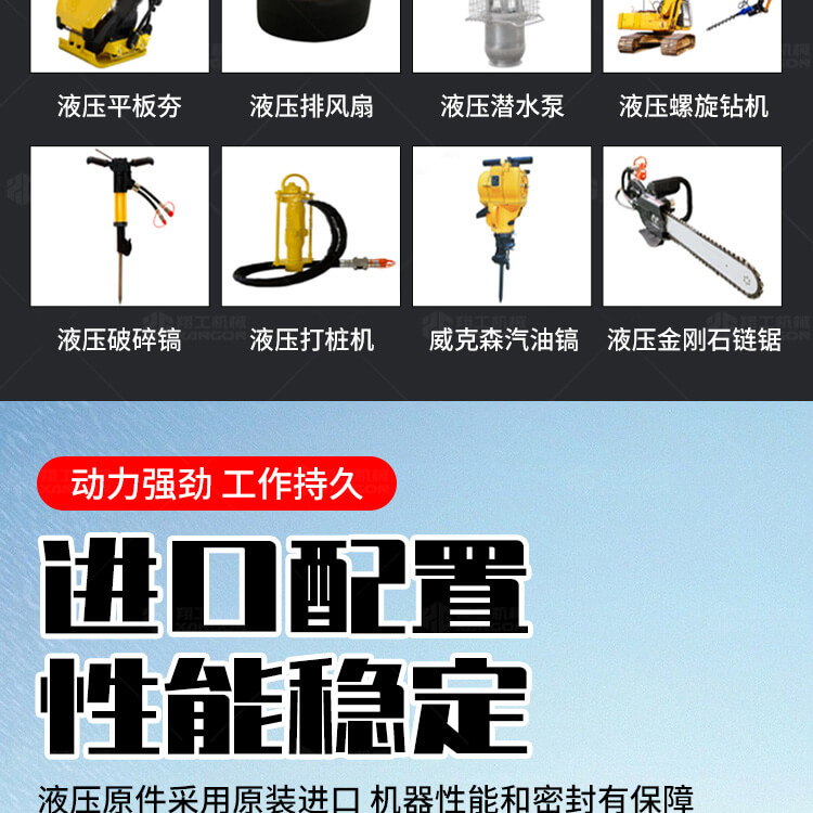 液壓動(dòng)力站可連接多種液壓工具,液壓渣漿泵,液壓破碎鎬等其他液壓設(shè)備。