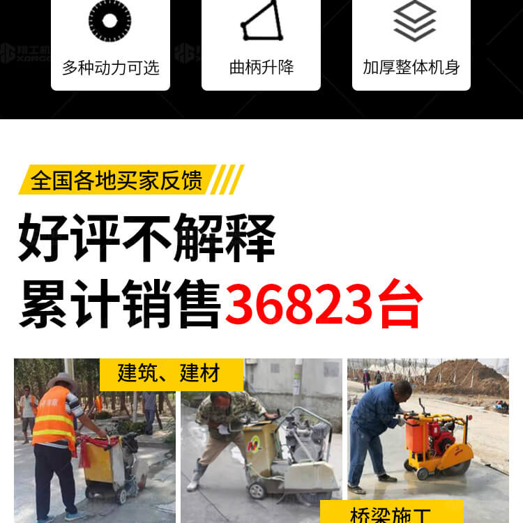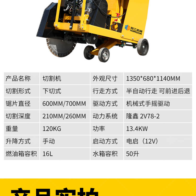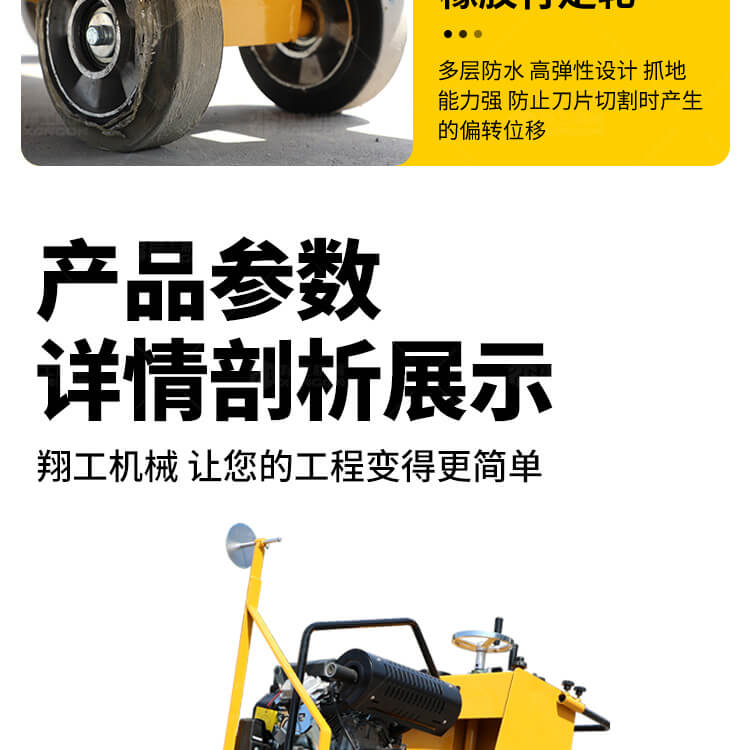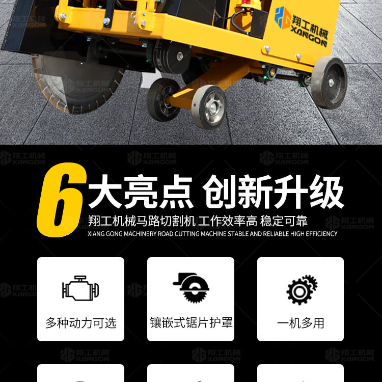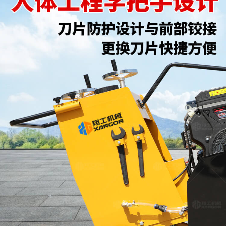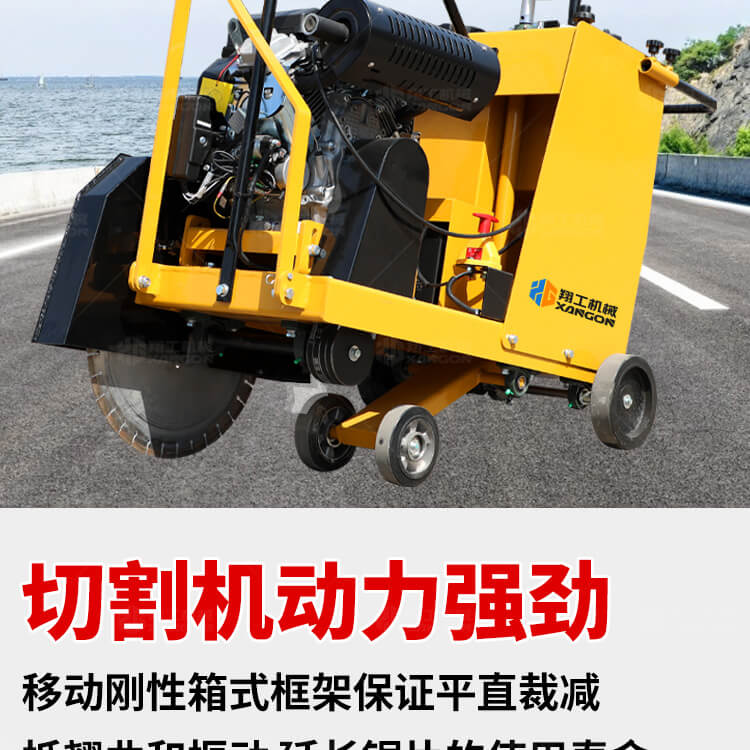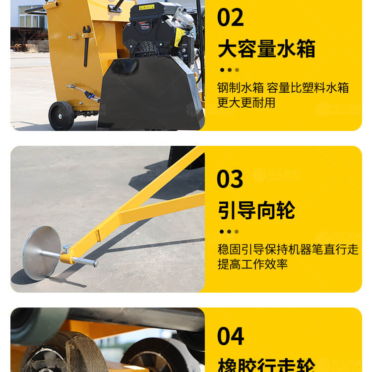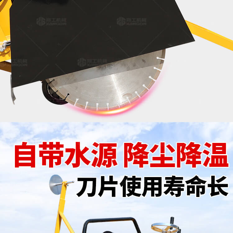 大鋸片大直經(jīng)馬路切割機(jī)自帶水源,降塵降溫,刀片使用壽命長(zhǎng)。