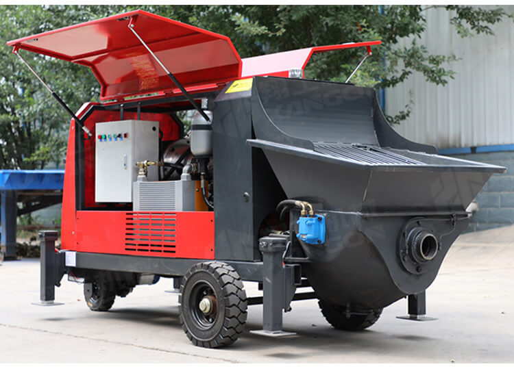 采用獨創(chuàng)的泵車尾輪驅(qū)動系統(tǒng)輕松解決移動時帶來的各種困難;采用雙排風(fēng)冷散熱系統(tǒng)散熱效果更好,液壓系統(tǒng)采用壓力更高,性能更穩(wěn)定的柱塞式自動變量主油泵,采用先進的三維立體壓模一體式自動攪拌料斗可輸送機制砂,高標號混凝土,有效緩解積料問題。