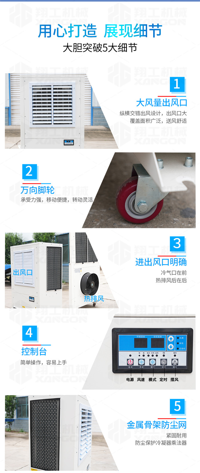 適應各種大面積場所快速降溫,無外機,無需專業(yè)安裝,即插即用 無需空調連接管。
