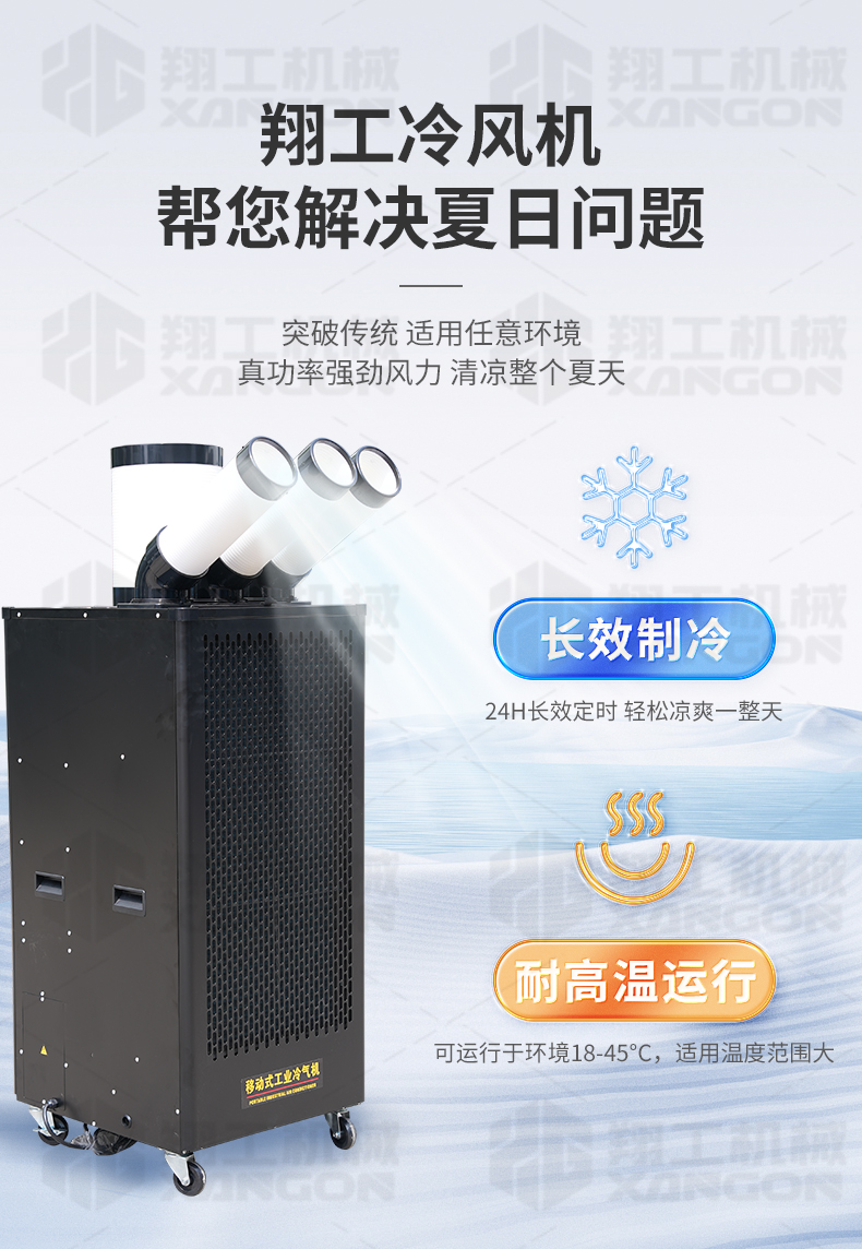 適應(yīng)各種大面積場所快速降溫:辦公場所降溫 汽車維修降溫 車間制冷 室內(nèi)制冷 集裝箱制冷 線上降溫 廚房降溫 車間崗位降溫