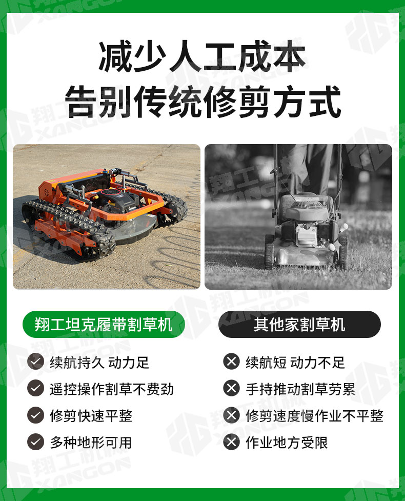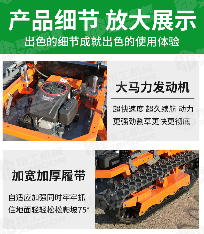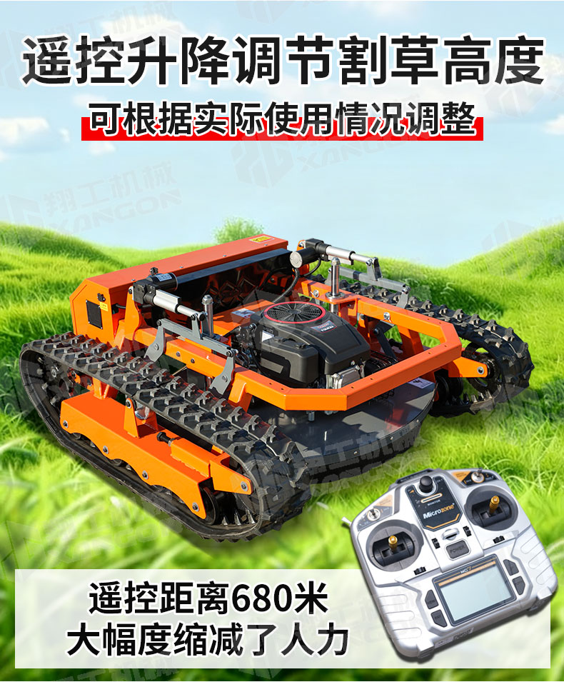 這是一款顛覆傳統(tǒng)的遙控坦克割草機(jī)。它采用堅(jiān)固的履帶底盤,輕松征服陡坡、濕滑草地等復(fù)雜地形。無線遙控操作,讓您遠(yuǎn)離烈日與噪音,在樹蔭下即可精準(zhǔn)完成修剪。動(dòng)力強(qiáng)勁,效率遠(yuǎn)超傳統(tǒng)手推式,是打理大型或不平整土地的理想智能工具。
