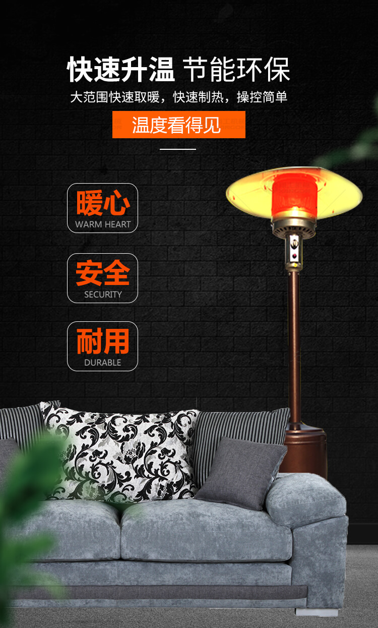 暖風機適用于工廠車間、辦公室、酒店、酒吧、飯店、餐廳、大廳、展廳、咖啡店.天井、步行街、站亭、運動館、步行街、大型會議室及戶外休閑等空氣流通好的場所