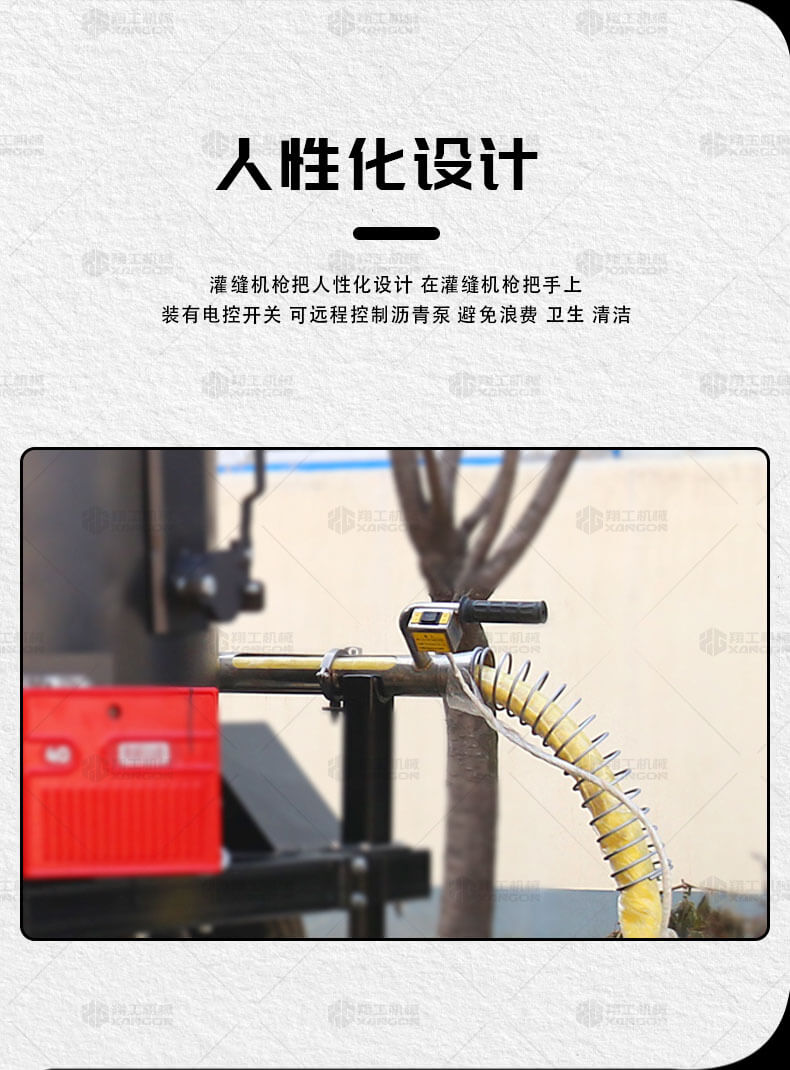 XGF-200瀝青灌縫機使用原料為瀝青灌縫膠,主要用于瀝青路面不規(guī)則裂縫、混凝土路面、橋梁伸縮縫、上下水道、煤氣管埋設機鋪裝路面的連結處防水處理,是翔工機械專門設計、生產的瀝青補灌縫機械。
